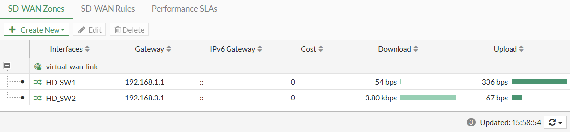 9. Create SD-WAN rules as needed. The SLA health check can be used to determine when the ISP connections are in or out of SLA, and to failover accordingly.