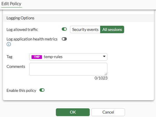 Policy Tagging is not enabled by default and must be enabled in Feature Visibility. Once enabled, a tag can be applied to the policy.
