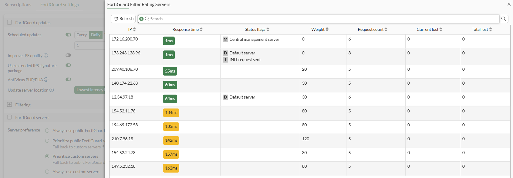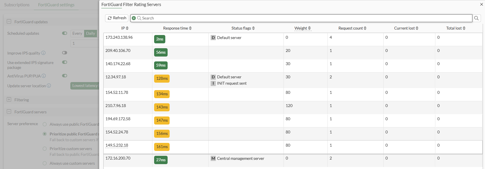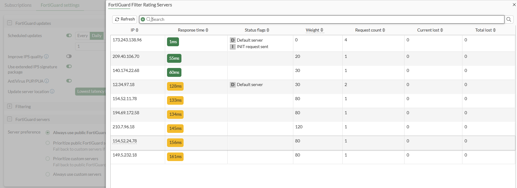 fortiguardin the CLI).Prioritize public FortiGuard servers