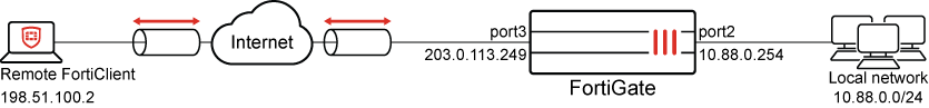 config system interface edit "port2" set vdom "root" set ip 10.88.0.254 255.255.255.0 next end config firewall address edit "local_subnet_1" set subnet 10.88.0.0 255.255.255.0 next end config firewall addrgrp edit "local_network" set member "local_subnet_1" next end -