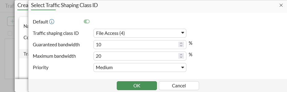 For each shaping profile, a default shaping class must be defined. Traffic is prioritized based on the default shaping group in the following two circumstances: