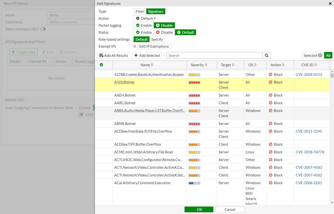 Add the sensor to a firewall policy to detect or block attacks that match the IPS signatures.