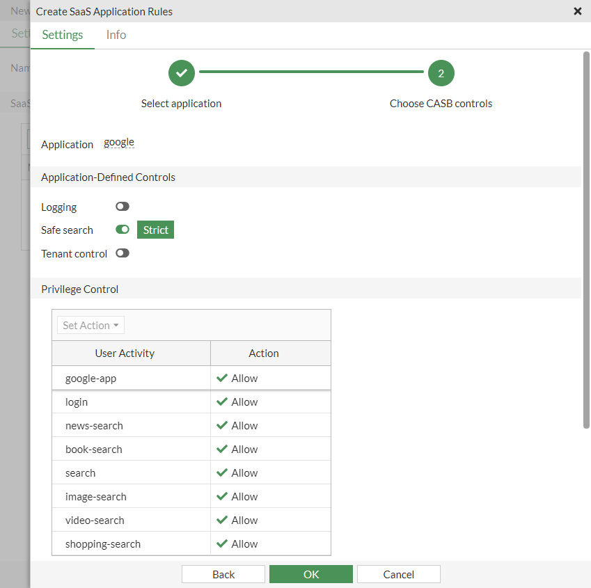 In the Security Profiles section, enable Inline-CASB and select the google_test profile.