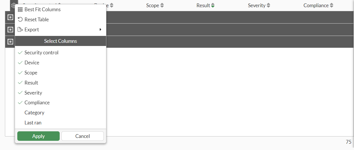 For the summary chart, click the Passed, Failed, or Exempt words or associated colors in the chart to filter the report results.
