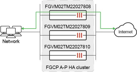 In this example, three HA members are running in an FGCP A-P HA cluster.