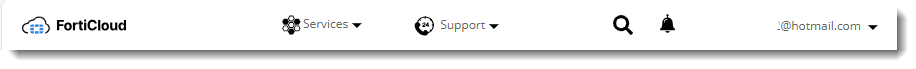As shown in the image above, the upper-right corner of the FIC portal shows your FortiCloud account ID, which typically is the email address that you've registered on FC. Clicking your account ID or the down arrow next to it opens a drop-down menu with a list of options for managing your FC account.