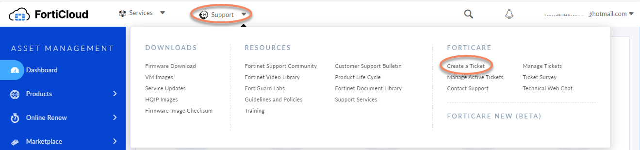 The instructions above apply to paying customers with valid licenses only. If you are using a free trial version of FortiIdentity Cloud and have questions about contracts, licenses, and account management, please create a ‘Customer Service’ ticket instead. |
