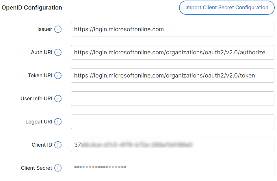 And here is what we are going to put in the OpenID Configuration section for our example: