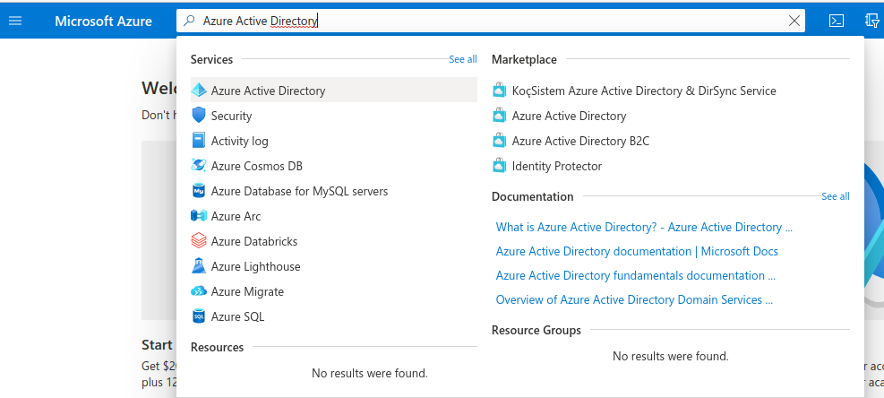 In order to set up OIDC for Microsoft, you need to go to your Microsoft Azure Portal, search for Azure Active Directory, and click it.