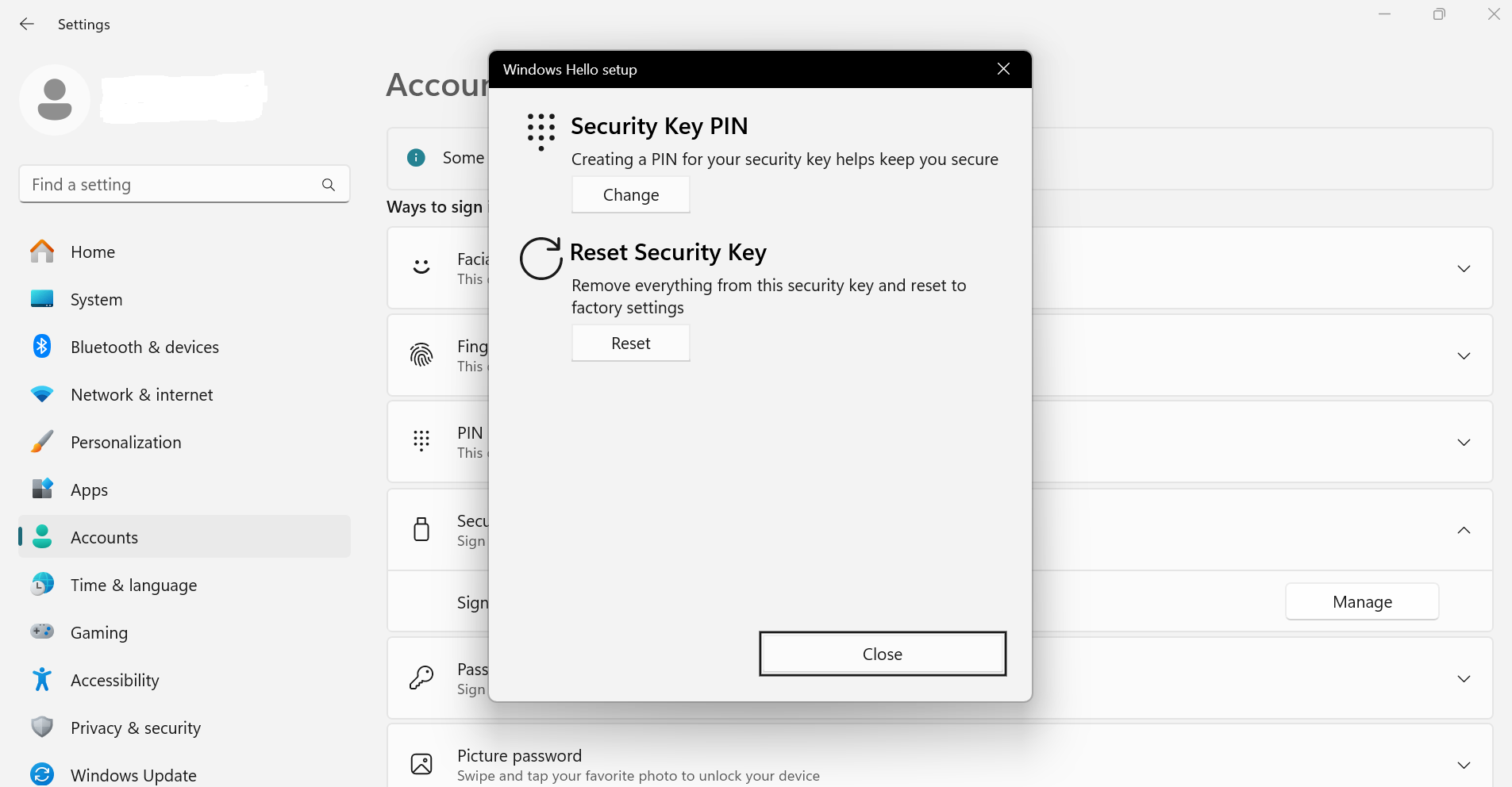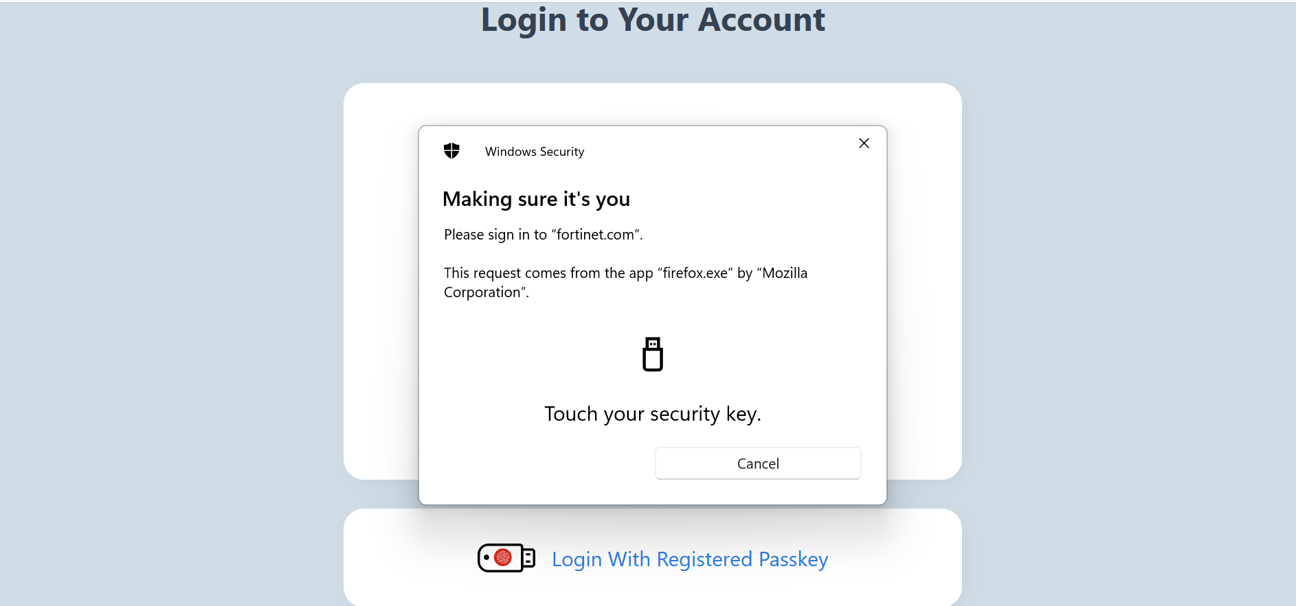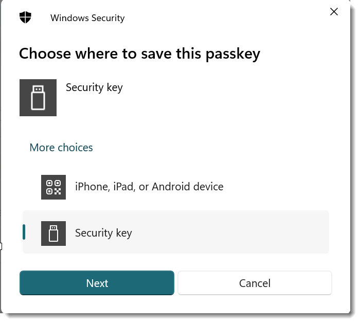- Choose Security Key in the Wprompt,