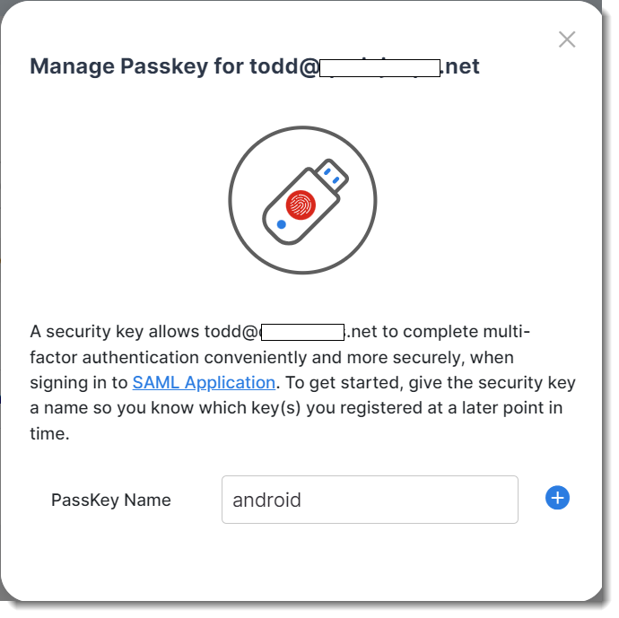 Registering a USB passkey for an end user