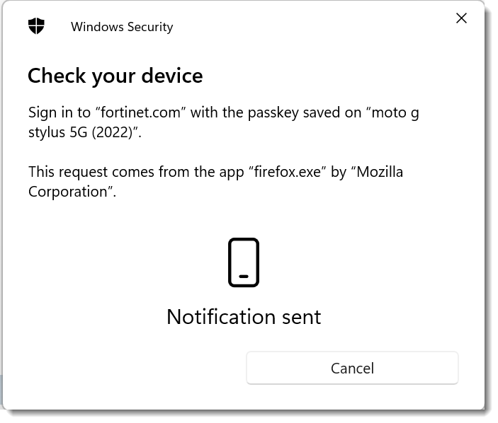 - Clicking on the phone will send a notification to the phone and the user will then have to provide the screen lock or other authentication mechanisms configured in the phone to authenticate.