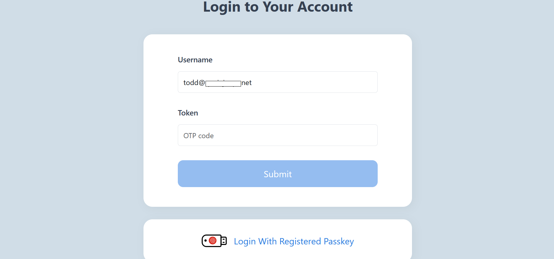 To add a SmartPhone as passkey for Todd, the following must be done: