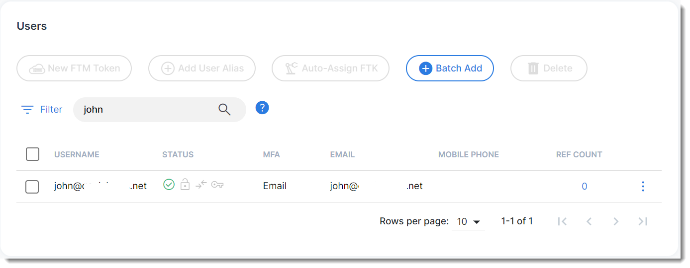 - Click User Management > Users, and search for John (end user) in this example.