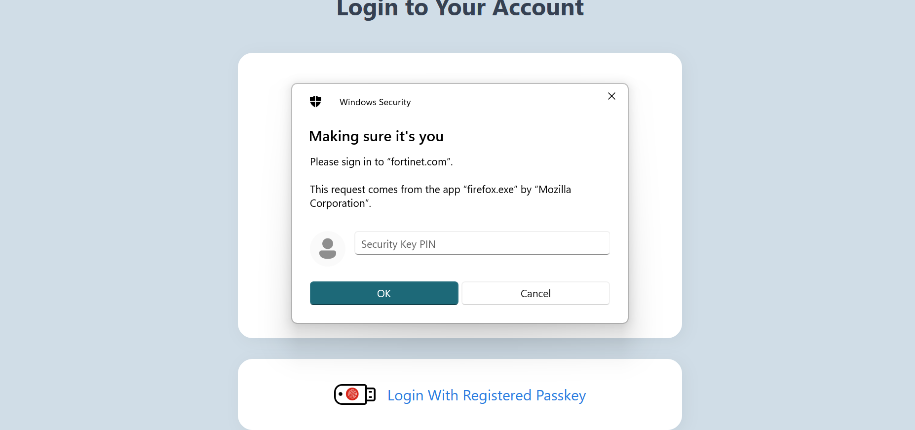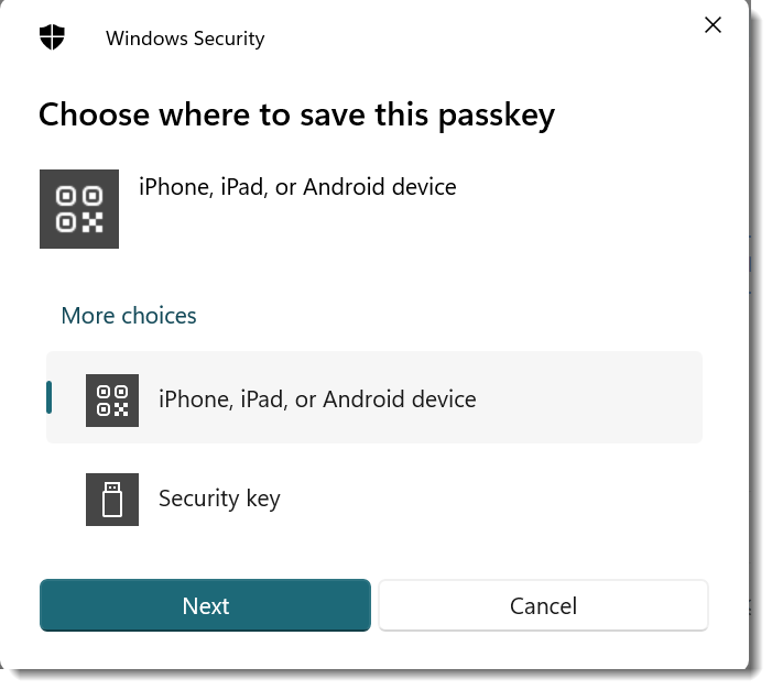 - Choose Security Key in the Wprompt,