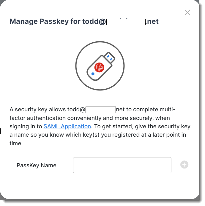 Registering a USB passkey for an end user