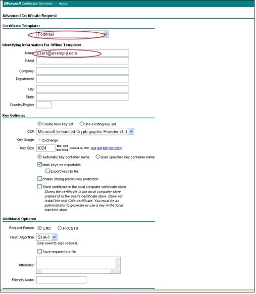 The custom certificate request template removes ambiguity and enables administrators to create certificate signature requests (CSR) specifically for FortiMail clients (that is, email users and administrators).