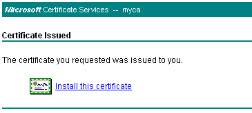 Once the CA server completes processing the request, the Certificate Issued window appears.