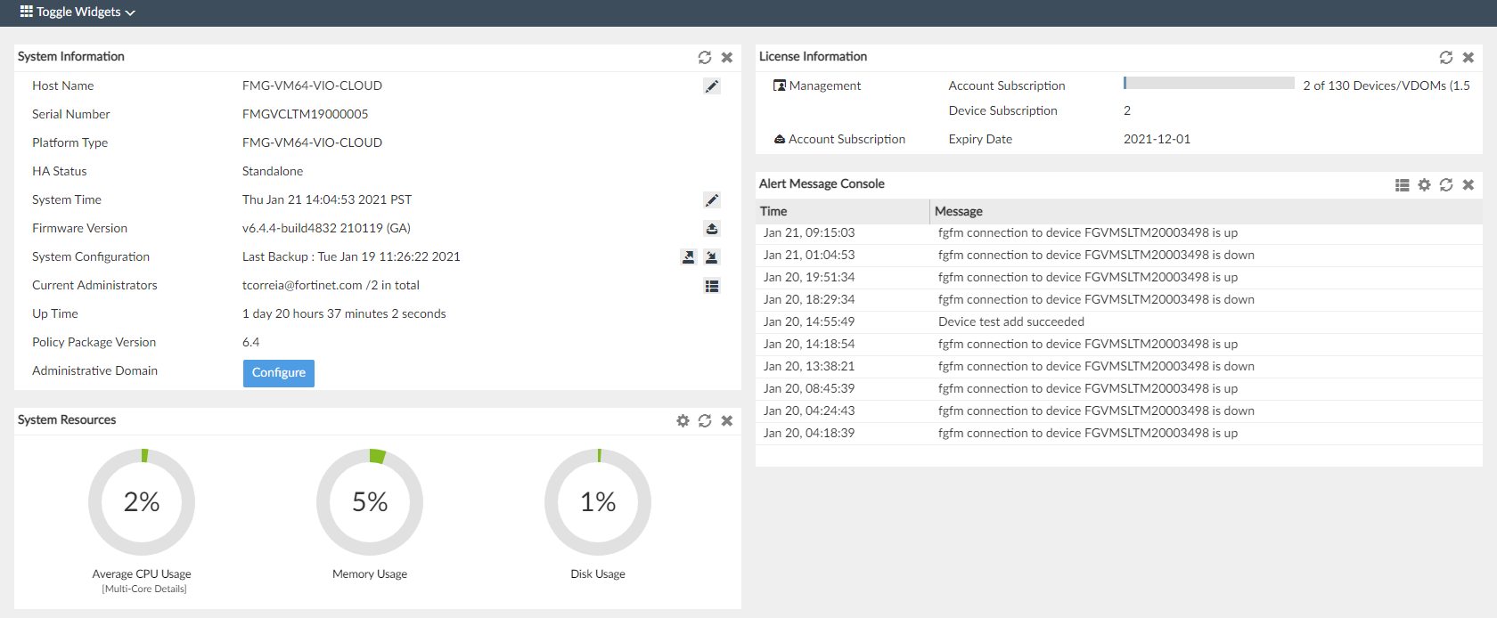 Go to System Settings > Dashboard. The Dashboard is displayed.