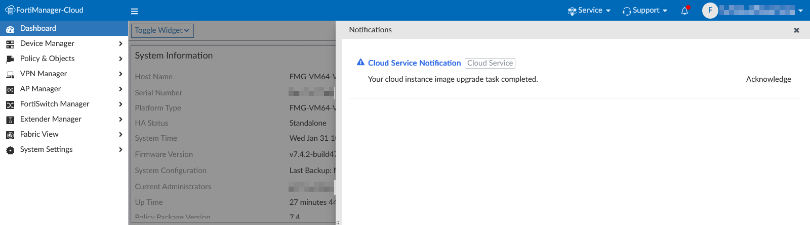 Return to the FortiManager Cloud portal.