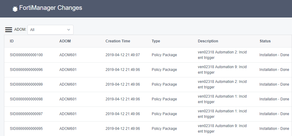 Viewing change requests details in FortiManager Integration App