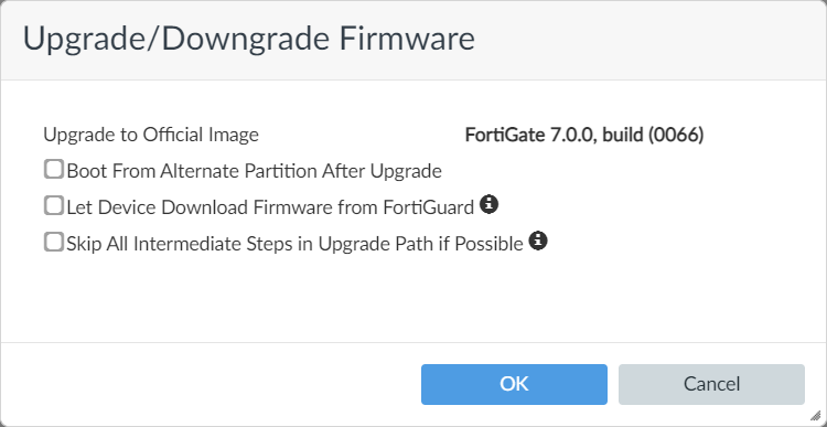 - Select the Let Device Download Firmware from FortiGuard check box, and click OK.