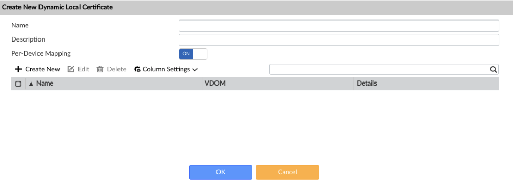Toggle Per-Device Mapping to ON. Click Create New. Select the Mapped Device and VPN Local Certificate. Click OK.