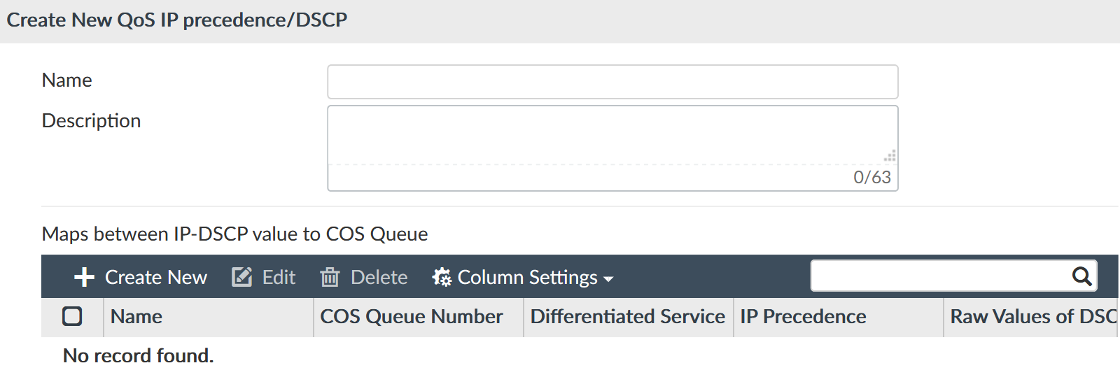 The Create New QoS IP precedence/DSCP pane opens.