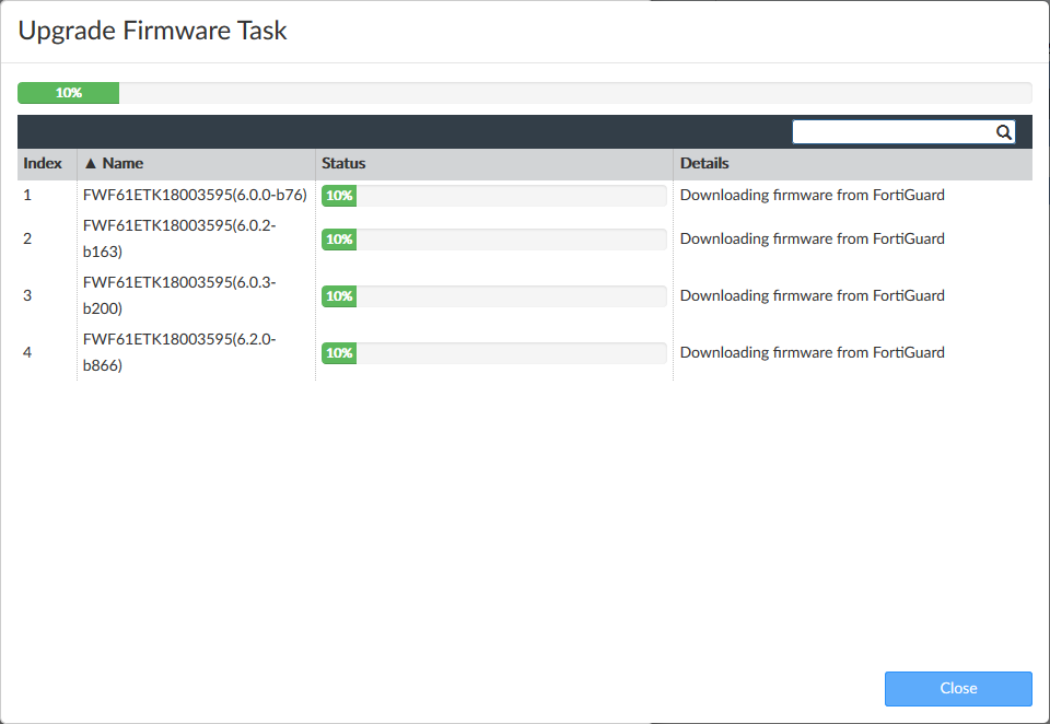 When using FortiManager to upgrade firmware on FortiGate, FortiManager can choose the shortest upgrade path based on the FortiGate upgrade matrix. In a multi-step firmware upgrade, each upgrade is a subtask.
