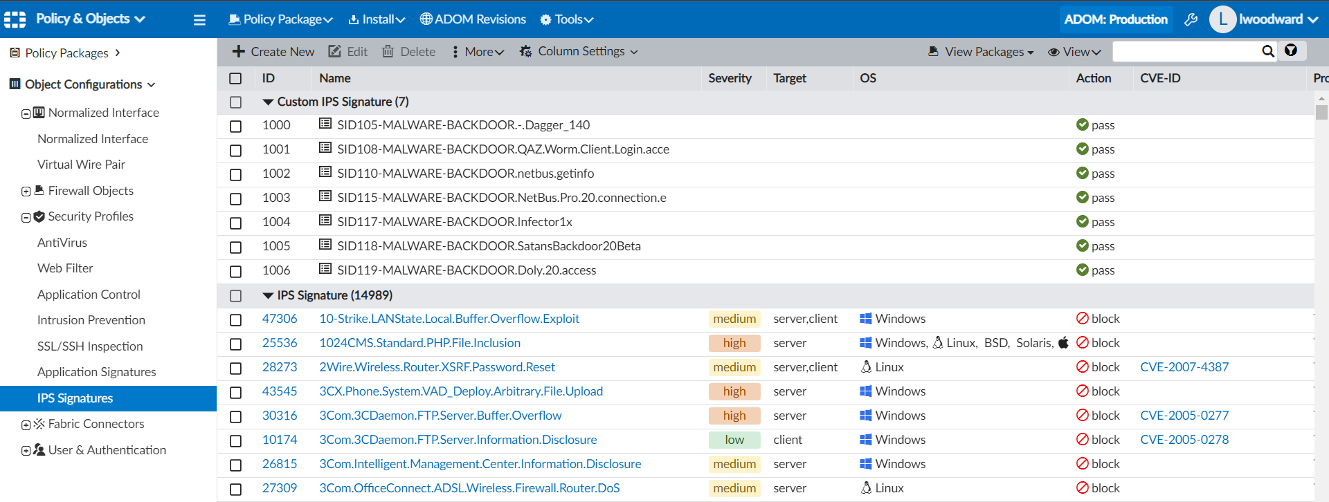 - In the tree menu, expand Security Profiles > IPS Signature.