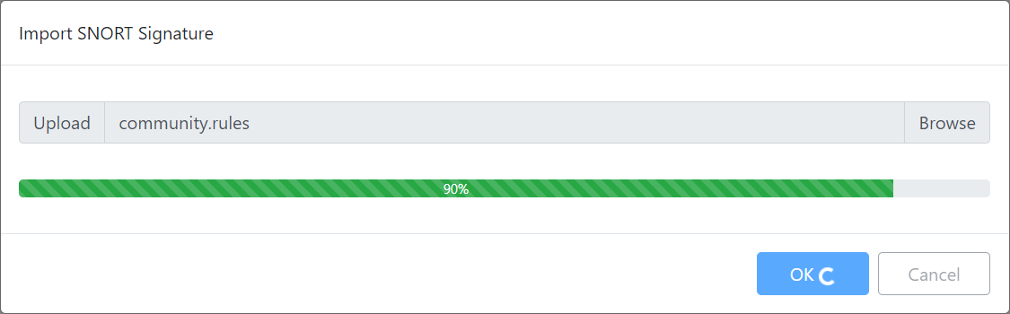 Alternately, you can drag and drop the Snort signature file on to the dialog box.