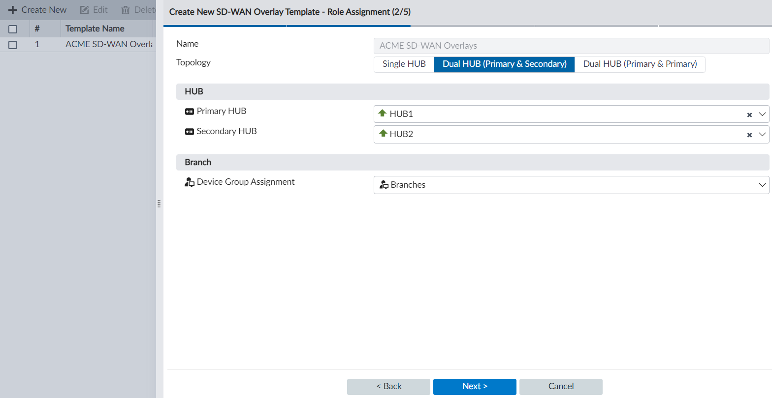 - Click Create New. The Create New SD-WAN Overlay Template dialog box is displayed.