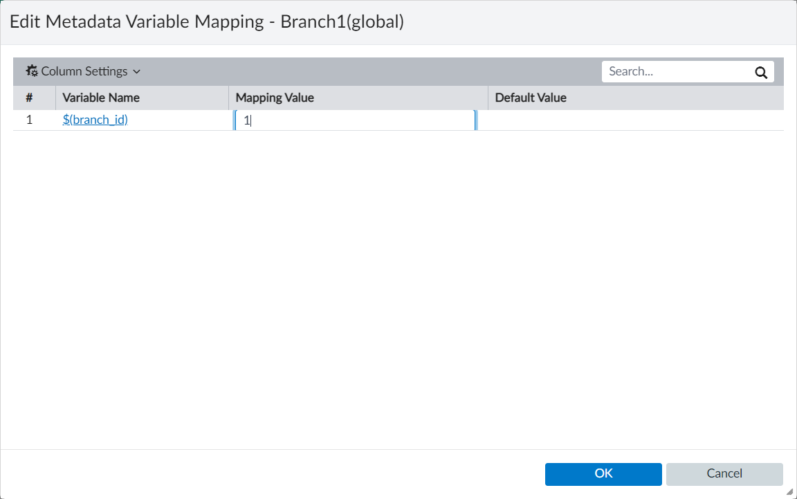 - In the content pane, right-click Branch1 and select Edit Variable Mapping. The Edit Metadata Variable Mapping dialog box is displayed.