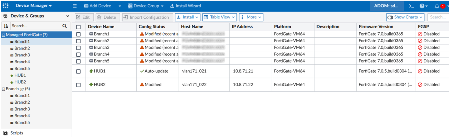 - Add your FortiGate branch device using the FortiManager Device Manager.