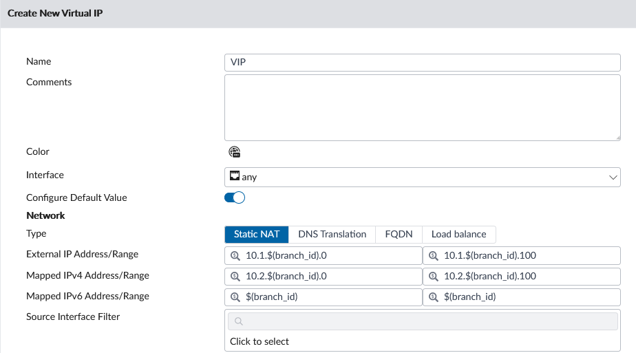 - For virtual IPs, you can use metadata variables in the External IP Address/Range, Mapped IPv4 Address/Range, and Mapped IPv6 Address/Range fields.