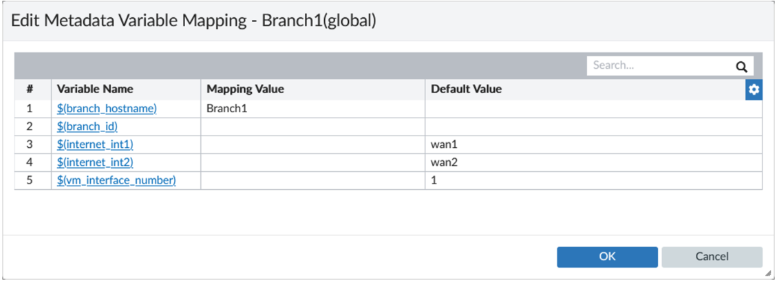 Metadata variable values must be mapped for each branch device.