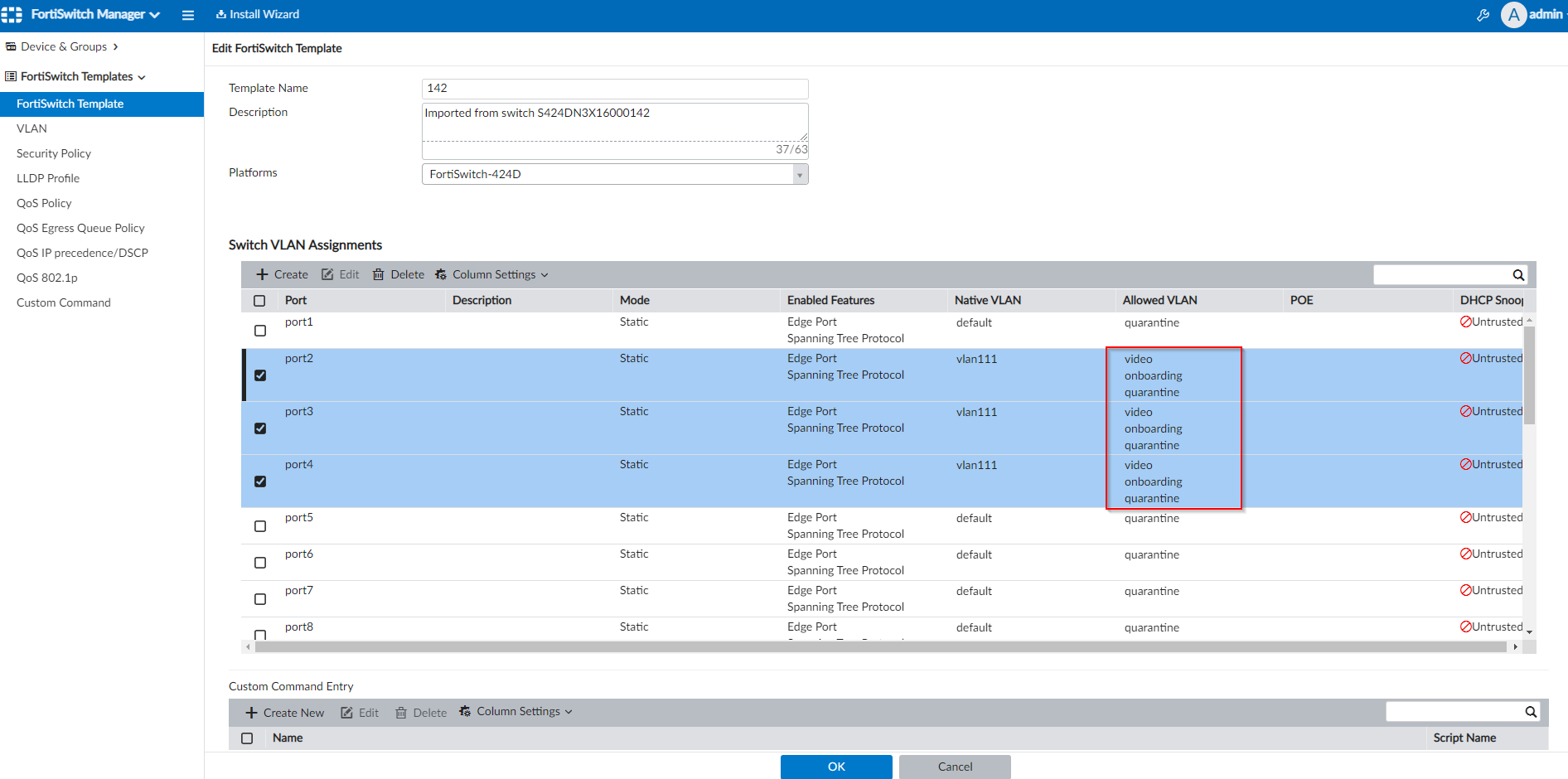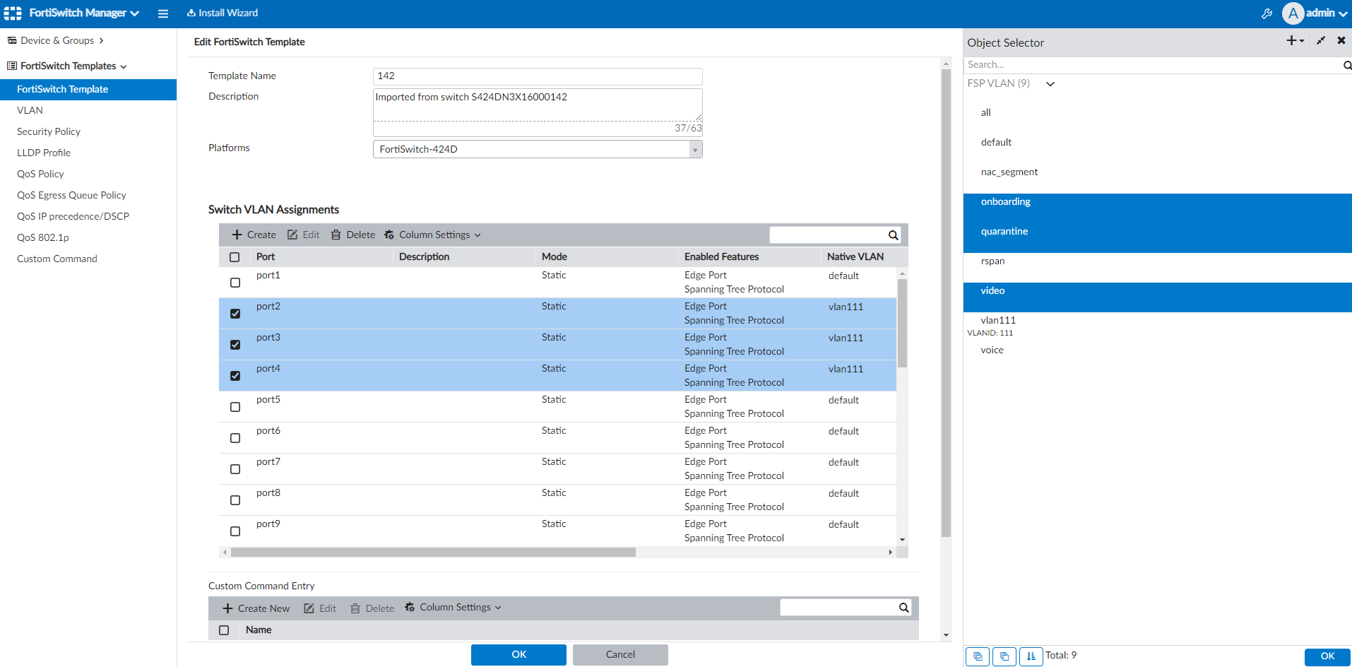 - In FortiManager, go to FortiSwitch Manager > FortiSwitch Templates.