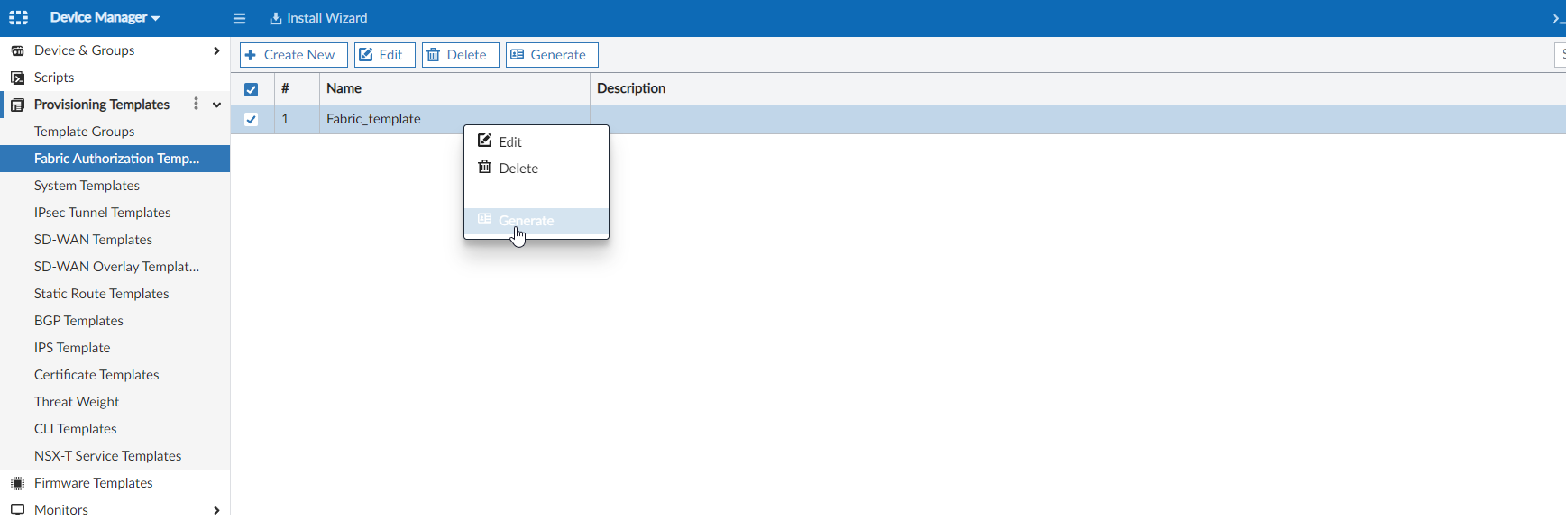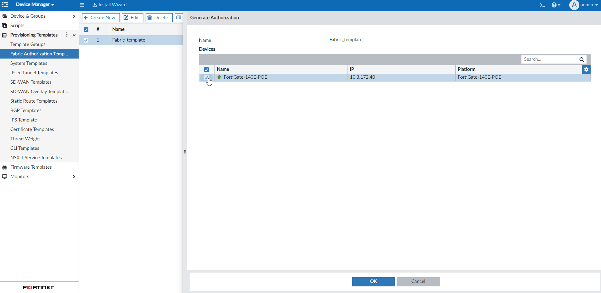 - Go to Device Manager > Provisioning Templates > Fabric Authorization Template.