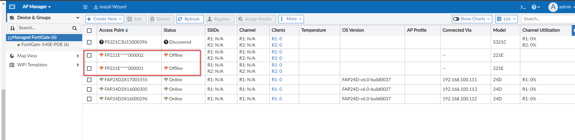 - Go to AP Manager, FortiSwitch Manager, and Extender Manager, and verify that the wildcard entries are generated.