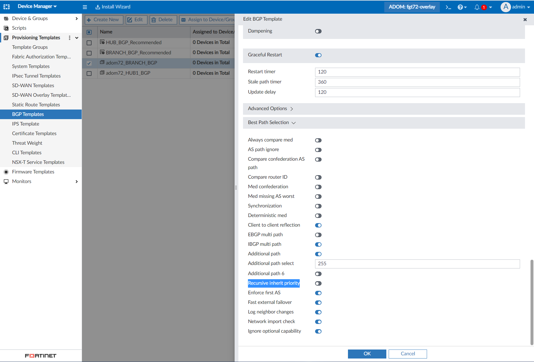 - Go to Device Manager > Provisioning Templates > BGP Templates.
