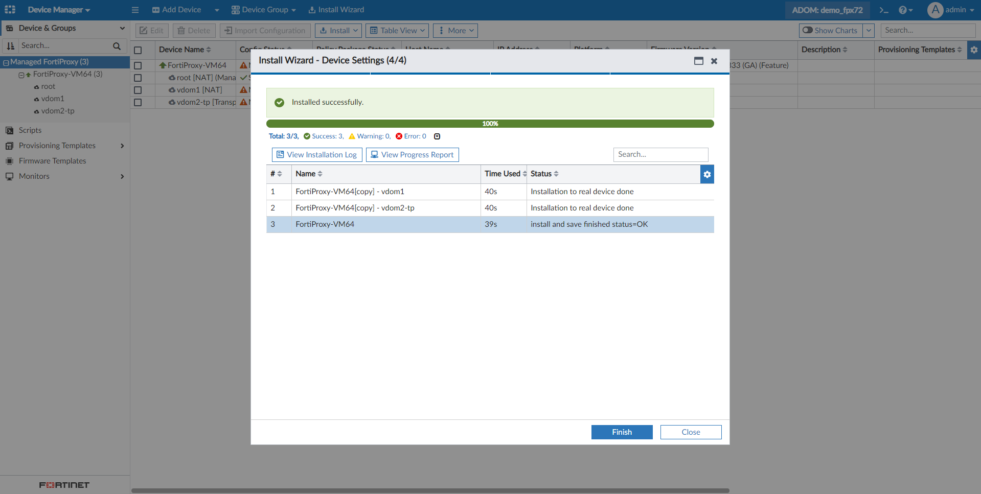 - Go to Device Manager and select a managed FortiProxy device to enter the Device Database.