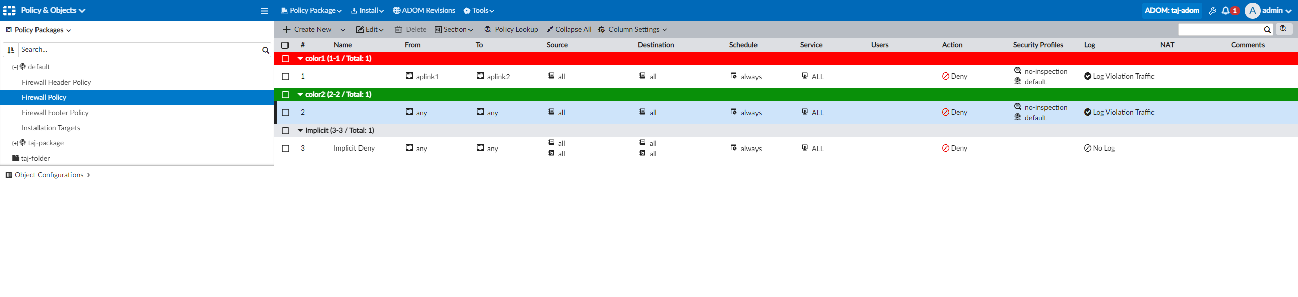 Policy Packages can use colors for sections to help the administrators easily differentiate between policies.
