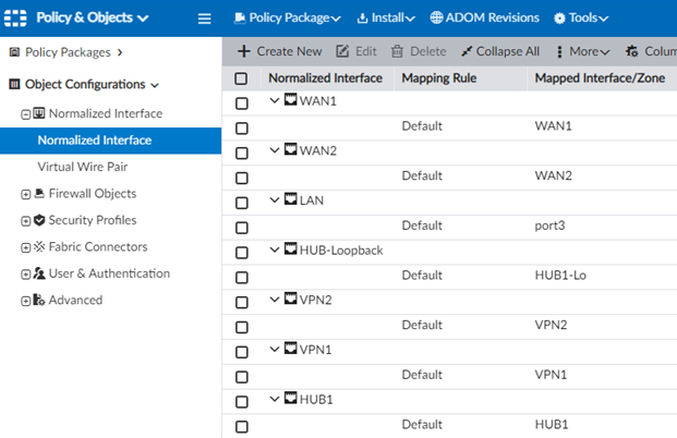 - In FortiManager, go to Policy & Objects > Object Configurations > Normalized Interface.