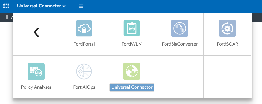 Grayed out tiles represent disabled Fortinet management extension applications. In the following example, Universal Connector is disabled.