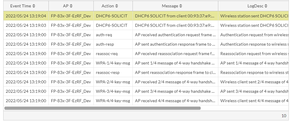 In the AP events displayed, select an event and click View Logs.