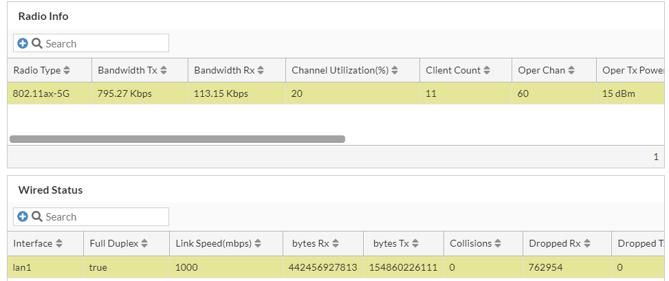This tab displays the details of the AP radio that the client associated with and the WAN status details of the AP.
