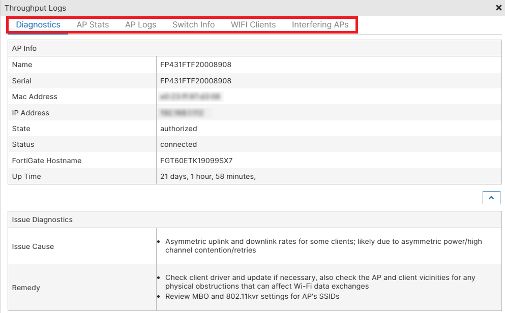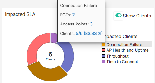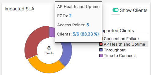 | Issue Cause | Detailed cause of the SLA breach that impacted the client/AP/FortiGate. |