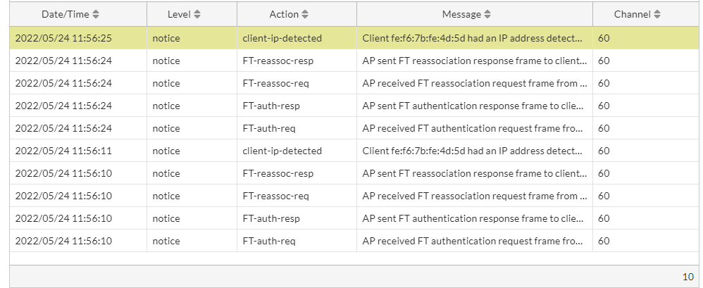 | Device | The MAC address of the impacted client device. |