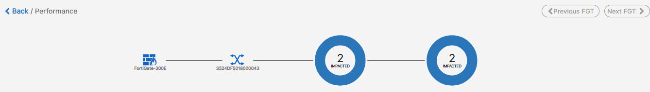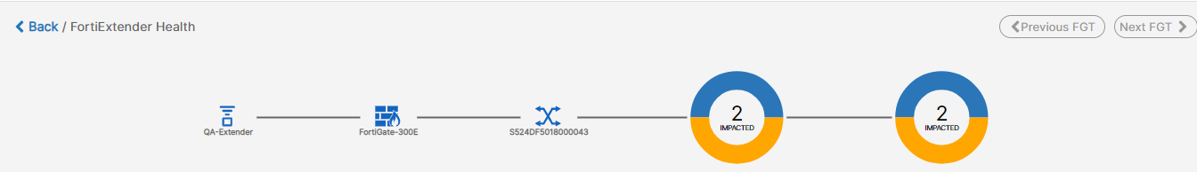 You can click on the impacted SLA listed in the panel to view the FortiExtender topology and the impacted client details.
