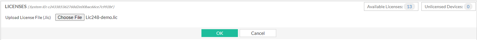 FortiAIOps licensing quota is based on the number of managed FortiGate controllers. FortiAIOps base license allows managing 10 FortiGate controllers. For additional licensing requirements, contact the Fortinet Customer Support with the System ID displayed on the Licenses page or register with FortiCare.